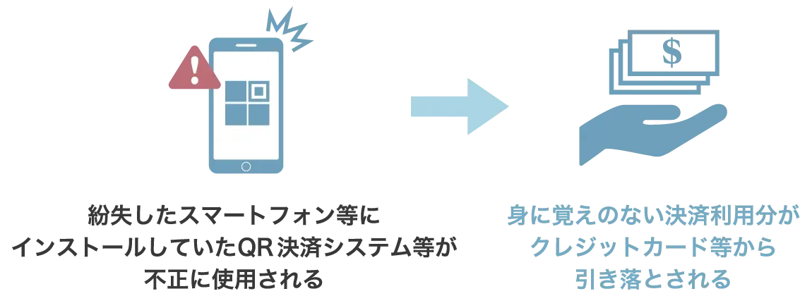 自分の落としたスマートフォンを他の誰かに拾われて、自分のQR決済システムが使われて、自分のクレジットカードから引き落としがされてしまった。
